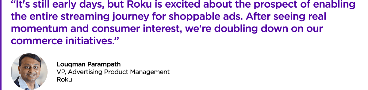 In 2023, the promise of shoppable ads has become a reality. Pinterest is making every pin on its platform shoppable, while TikTok livestreams enable users to add products directly to their shopping carts.29 And Roku, with our leading scale, is driving the same behaviors in TV streaming.