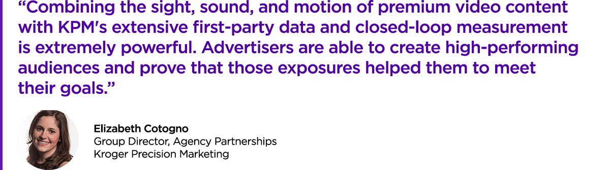 Additionally, HomeChef used KPM's shopper data to reach lapsed customers and in-market shoppers and measure performance after a streaming campaign on Roku. The campaign achieved a 2.4x return on ad spend, and delivered a 20.6% lift in sales amongst new buyers. Home Chef was able to recapture lapsed buyers and activate a new segment of meal kit customers.27