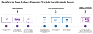 The OneView Ad Platform, a demand-side platform (DSP) powered by first-party insights from Roku Audiences, works across digital advertising exchanges as well as TV streaming services. The direct consumer relationships from Roku Audiences and Roku's network of data partners powers a complete view of streamers as they navigate streaming channels, devices, web, and mobile.